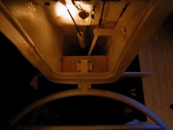 Det ble skåret ut et hull i buken på flyet for stikke leggen inn i gjennom. På innsiden er det